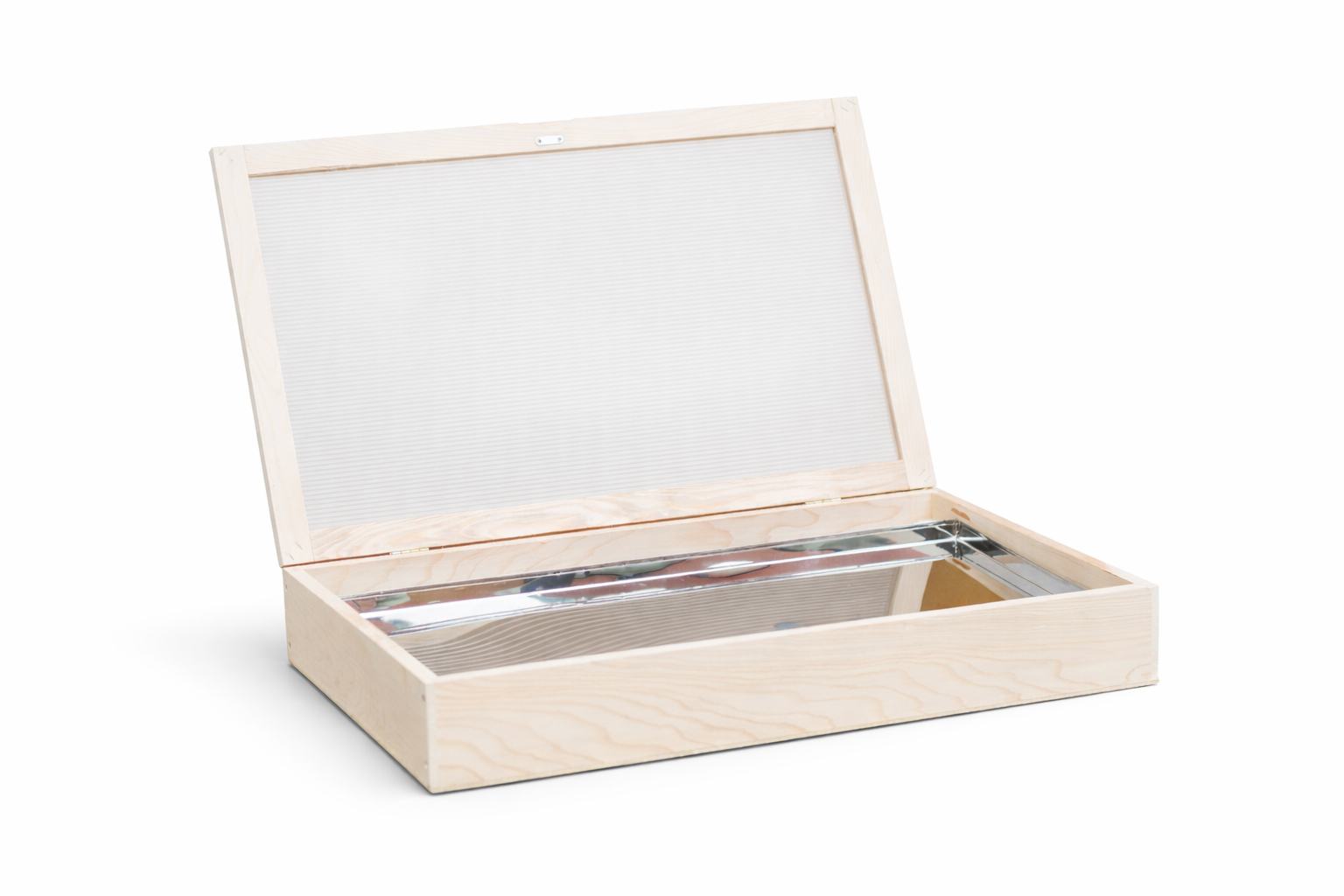 Materiál - dřevo, plexisklo a pozinkovaný plech.