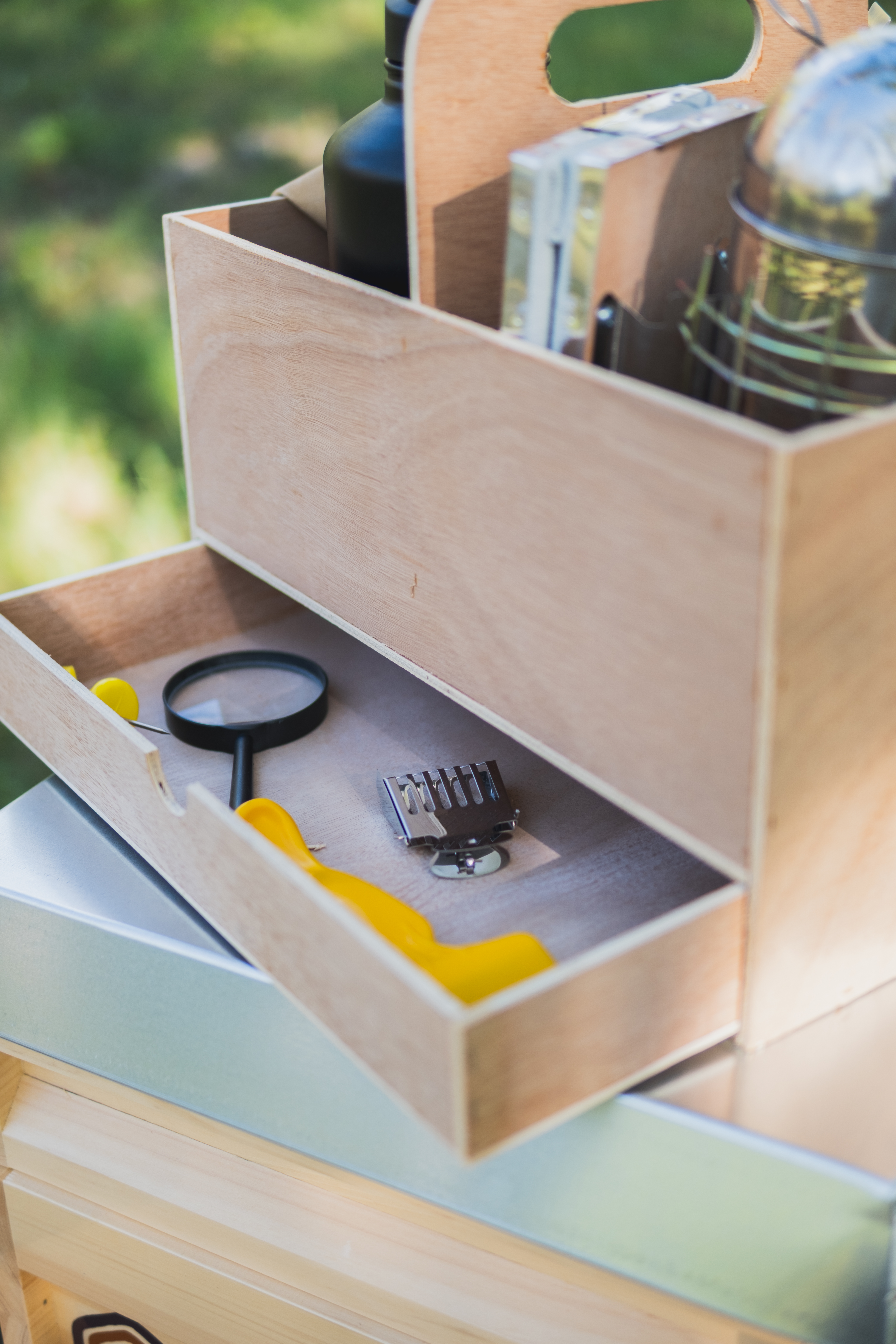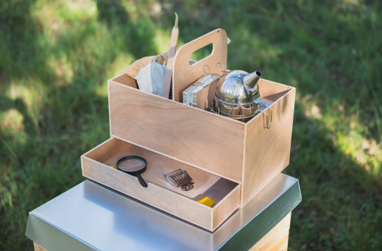 Drevená prepravka na včelárske pomôcky umožňuje jednoduché prenášanie včelárskeho náradia pri prehliadkach, respektíve pri práci so včelami. Môžete si do nej vložiť dymák, rozperáky, zmetáčiky a prenášať ich od úľa k úľu.