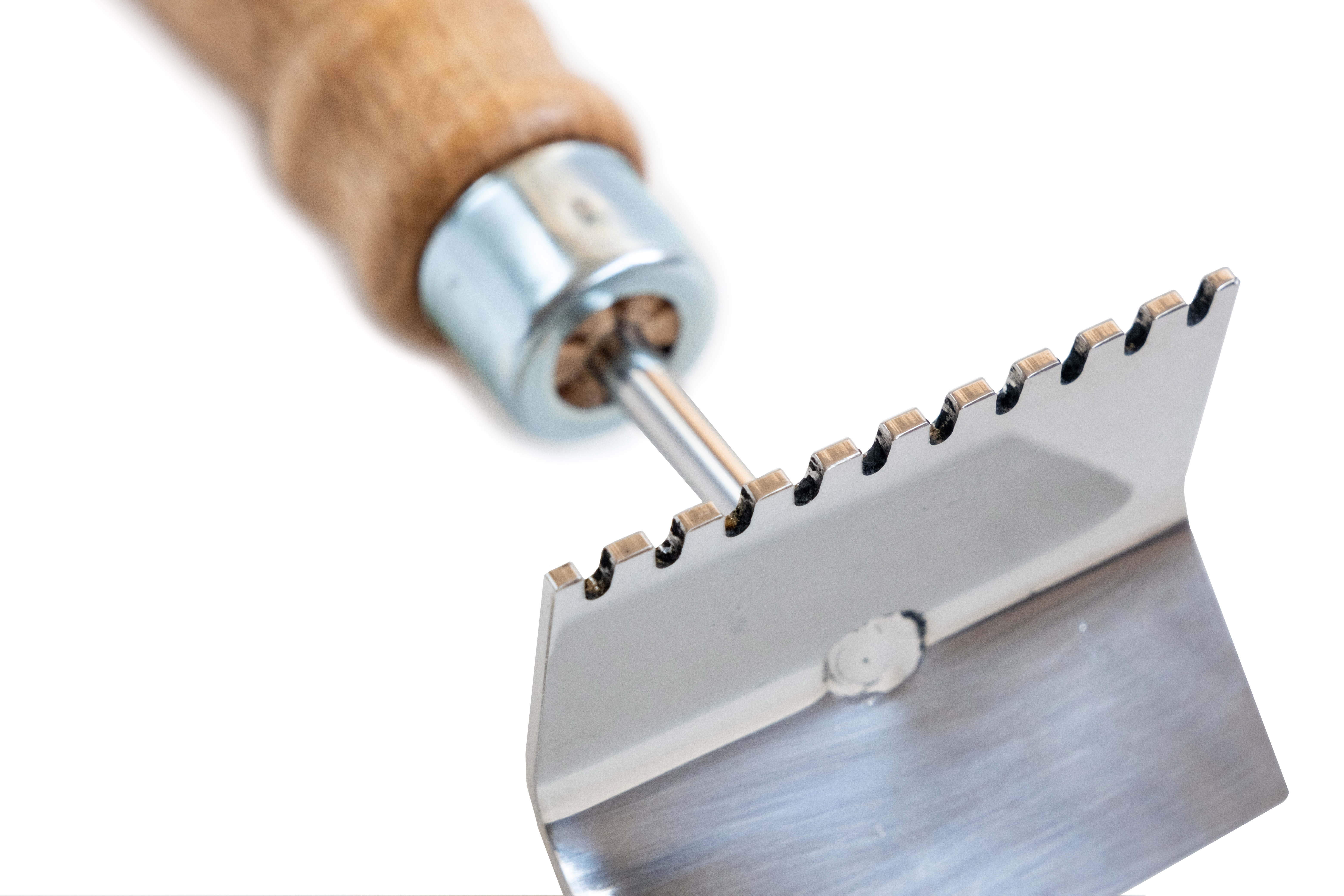 Škrabka má zuby, ktoré zapadajú do medzier na materskej mriežke. Vďaka nim sa jednoduchým ťahaním mriežka vyčistí od nánosov propolisu a vosku.