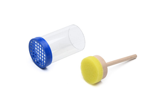 Plastová výchytka s piestom je určená na vychytávanie matiek pre potrebu značenia matky farbou. Piest je zakončený jemným molitanom, takže neublíži matke. Po stlačení piestu bude matka pritlačená na sieťku, kde ju je následne možné označiť.