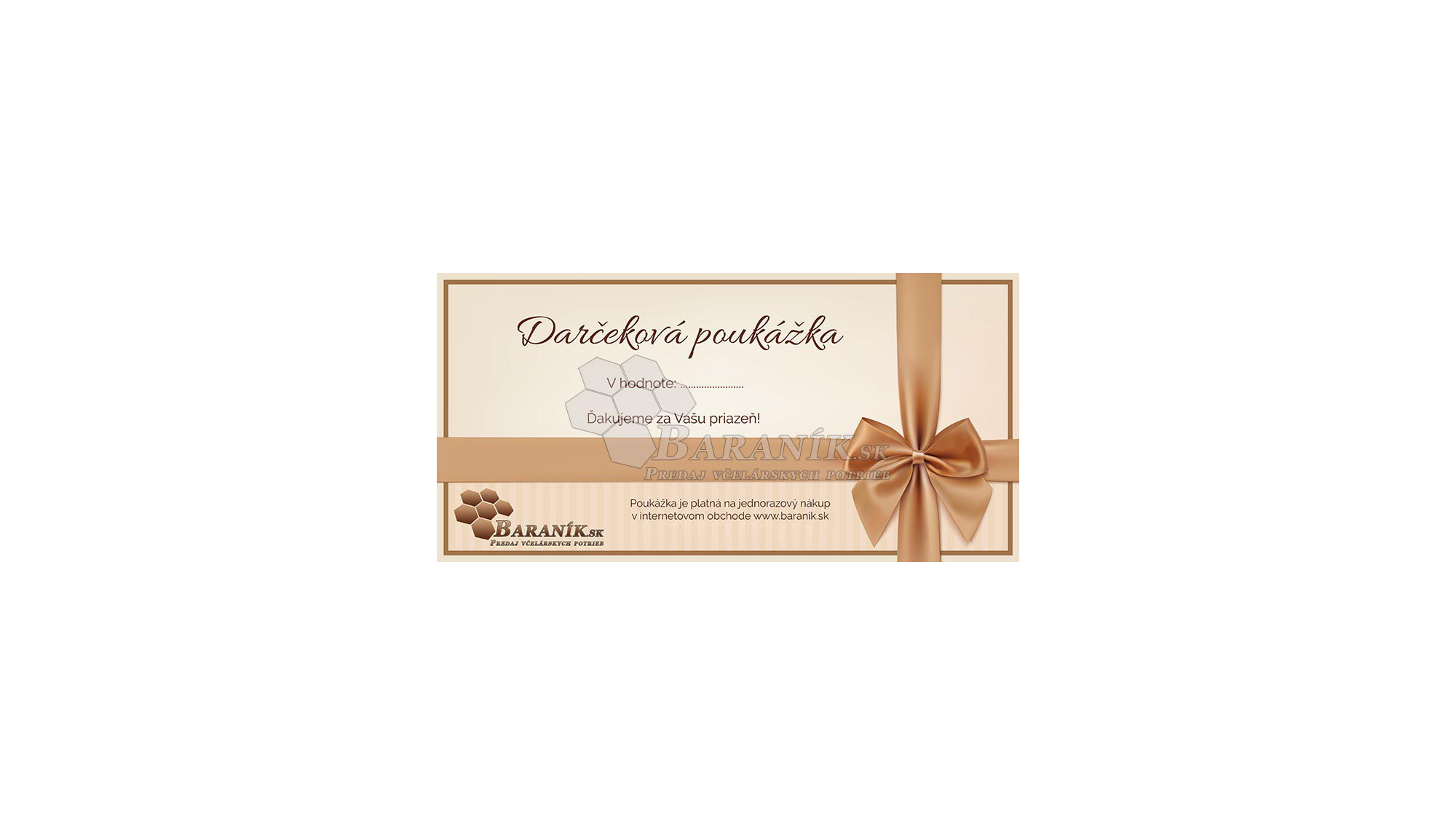 Darčeková poukážka je platná iba na internetovom obchode www.baranik.sk použitím kódu prislúchajúcemu danej poukážke.