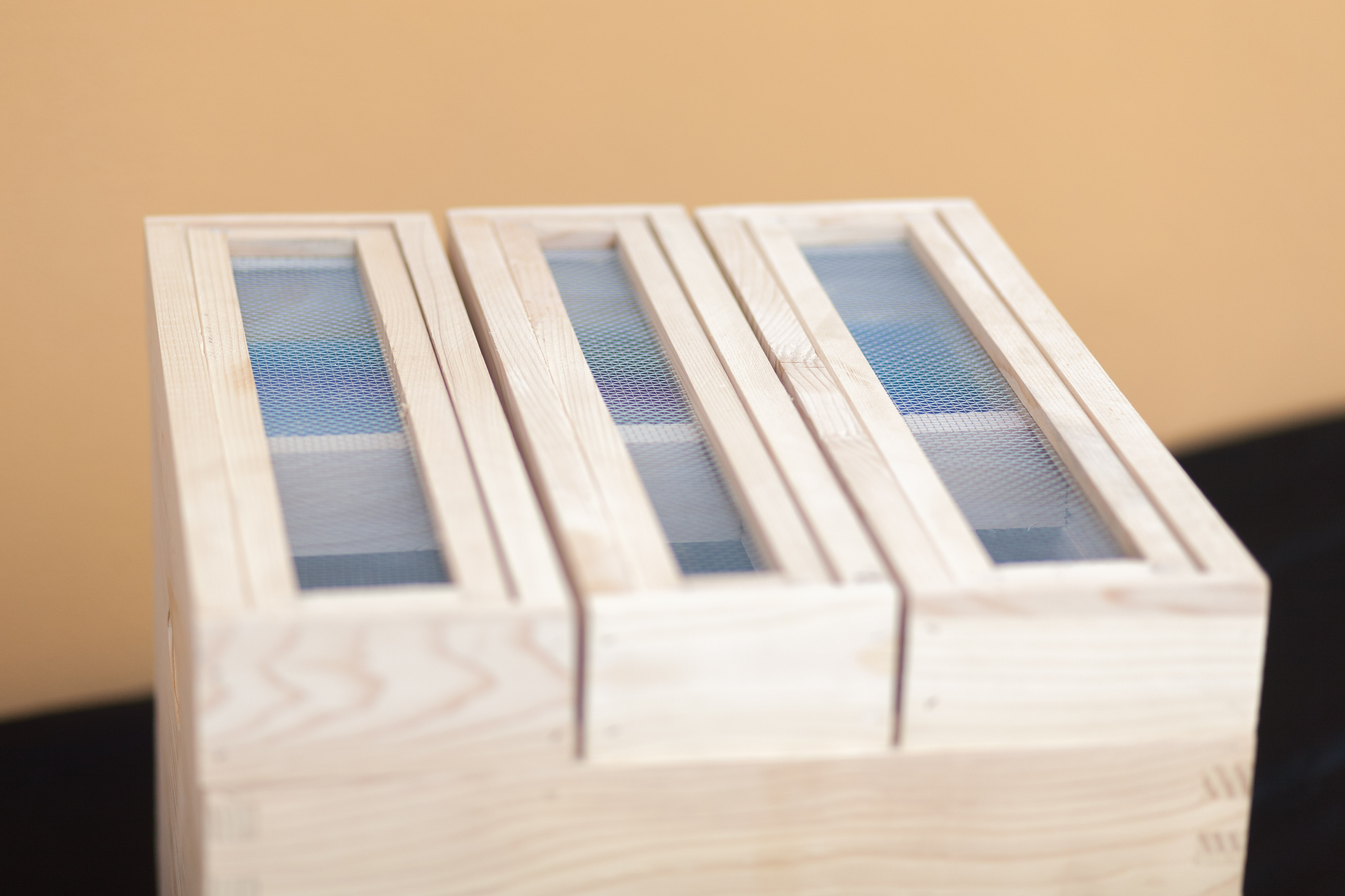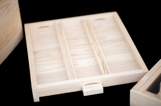 Drevený oplodniačik je kompaktných rozmerov, obsahuje malé rámiky, poklop a letáčový otvor s kruhovým uzáverom.