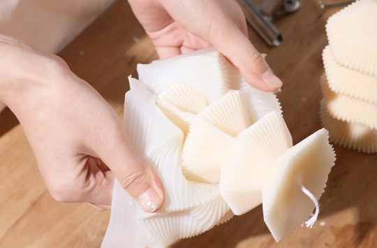 - Po stuhnutí rozovrieť bočný rez a sviečku jemne vybrať.